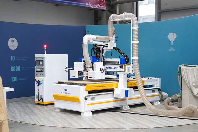 絲杠數(shù)控開料機(jī)采用雙圓盤式換刀刀庫 ,可完成復(fù)雜工序加工,節(jié)省換刀時間。
