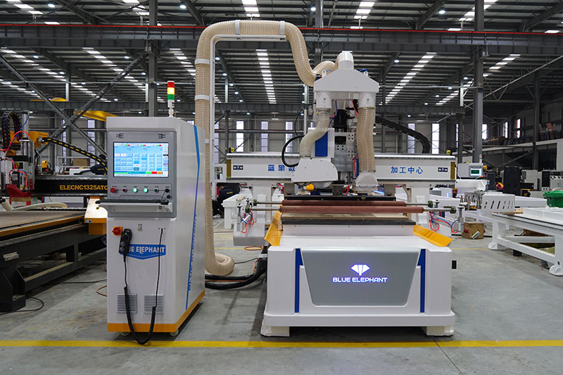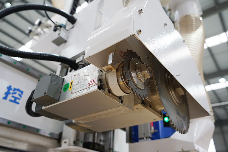 旋轉(zhuǎn)鋸可進(jìn)行任意角度切割,自動換刀主軸配大容量刀庫能夠進(jìn)行雕刻、銑型、鉆孔、切割下料等。