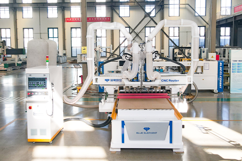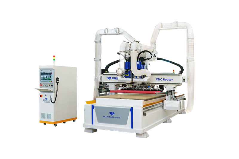 獨(dú)立雙頭開料機(jī)在傳統(tǒng)開料機(jī)基礎(chǔ)上增加一套9KW換刀主軸的機(jī)頭,兩臺主軸同時(shí)工作,實(shí)現(xiàn)了效率高、速度快、高精度等優(yōu)勢。