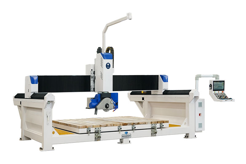 5+1 數(shù)控橋切鋸能夠以任何所需的角度和形狀對花崗巖、大理石、人造石、板巖和各種其他石材進行切割和雕刻。本機采用的藍(lán)象數(shù)控系統(tǒng)。