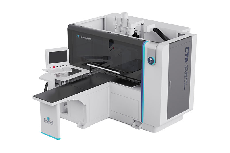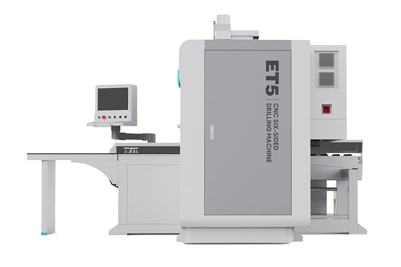 ET5單鉆包六面鉆(緊湊型)數(shù)控鉆孔機優(yōu)化了機床整體尺寸,占地面積小,降低運輸成本,具有加工效率高,自動化程度高等優(yōu)點,通過無線掃碼、自動分揀、自動定位、自動上料加工,可一次性實現(xiàn)六面加工及前后坡口加工。